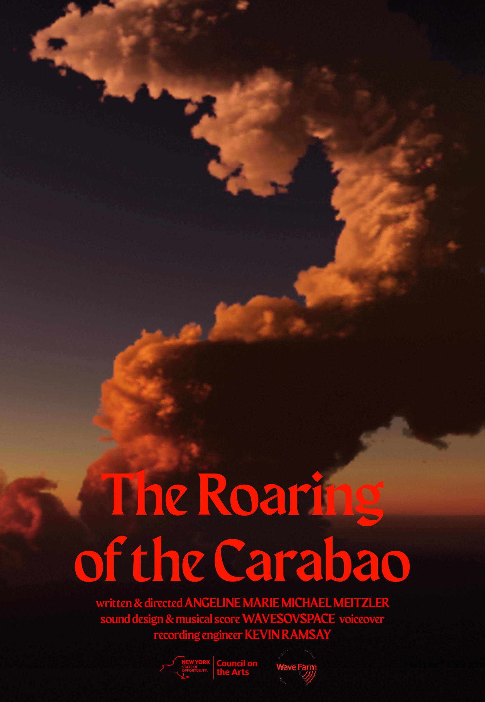 Utilizing aspects of hauntology, The Roaring of the Carabao engages with the volcano’s ongoing activity as a spectre of the production of Filipino Americanism; silenced imaginaries never properly mourned for and visions of a future that were promised but never arrived- a method of considering the volcano’s activity itself as a process of relentless remembering. Activating the Taal volcano as a dynamic character reconciling with the land's history, the film narrates a story of a night of the volcano’s eruption, intergenerational anger and a desire for heat.